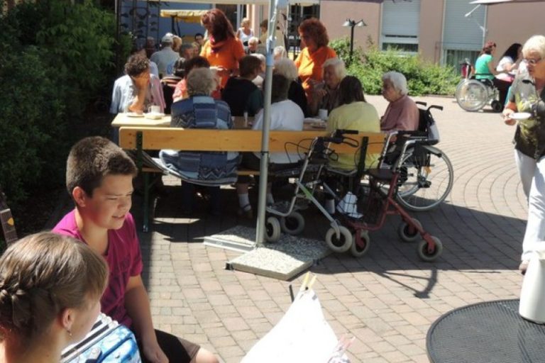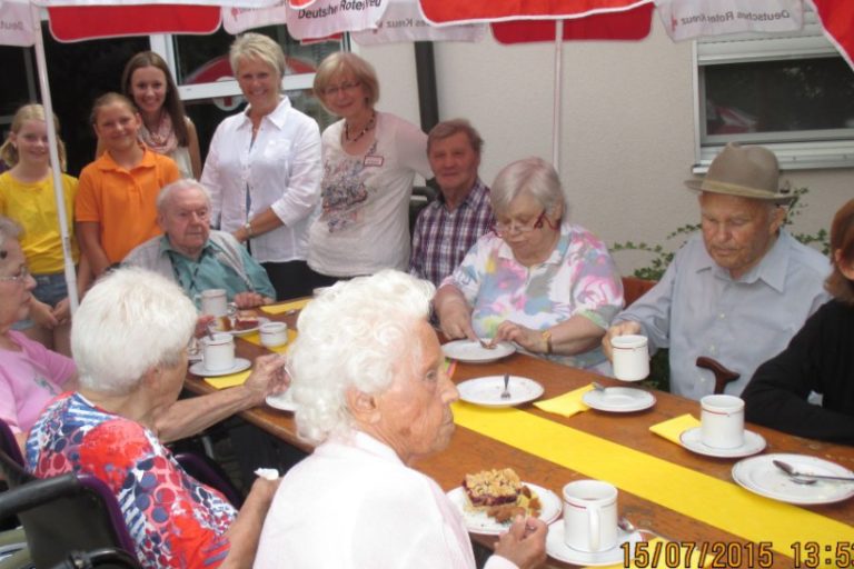 Holunder-Kücheln, Kaffee, Kuchen und flotte Musik unter weißblauen Himmel servierte die Frauenunion den Bewohnern im…