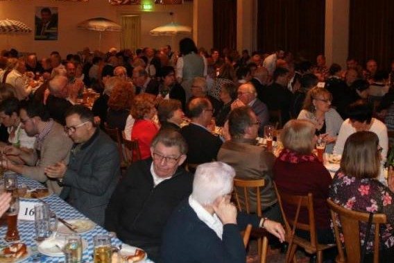 Ortsvorsitzender Gerald Morgenstern begrüßte beim „Bayerischen Abend“ Hunderte Gäste im voll besetzten Jugendheimsaal. Doch zunächst…