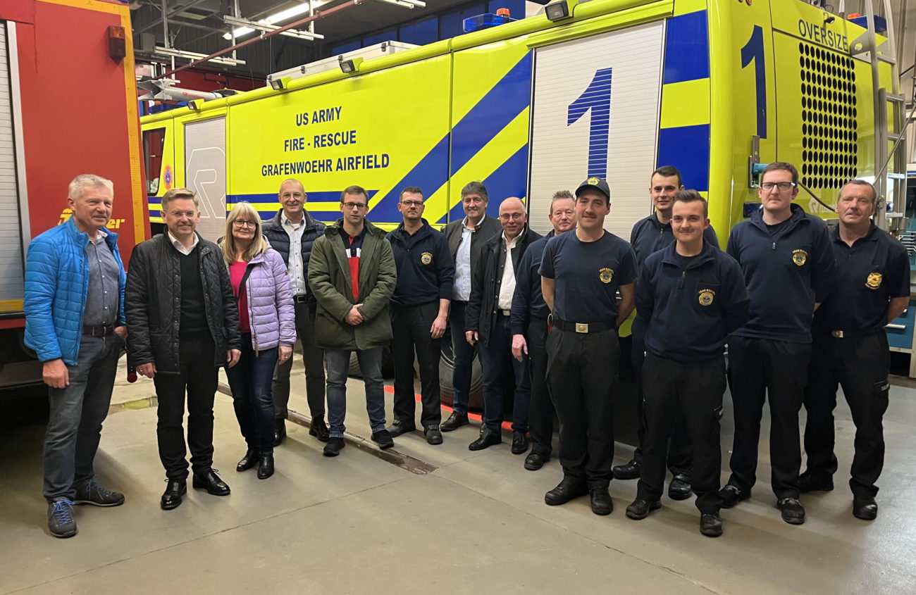 Crew-Chief Norbert Ackermann dankte auch im Namen von Josef Rodler, dem Leiter des Firedepartments, für den Besuch und die Mitbringsel. Erfreulich sei der Stellenzuwachs und das Nachrücken junger Kräfte, wobei Ackermann nochmals auf die Notwendigkeit des Nachwuchses aus der näheren Umgebung hinwies. Die Feuerwehrleute würden auch alle als Firstresponder bei medizinischen Notfällen eingesetzt. Die sei neben den Feuern auf den Schießbahnen der Haupteinsatzbereich. Die Ausbildung zum Standard des US-Firefighters erfolgt auf der US-Feuerwehrschule in Katterbach. Wünschenswert seien auch bestimmte Techniklehrgänge an den bayerischen Landesfeuerwehrschulen, hier baten die Firefighter Landtagsabgeordneten Reiß um seine Unterstützung.
